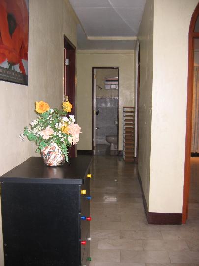 | Hallway to kitchen from Lanai area. Marbled floor. |