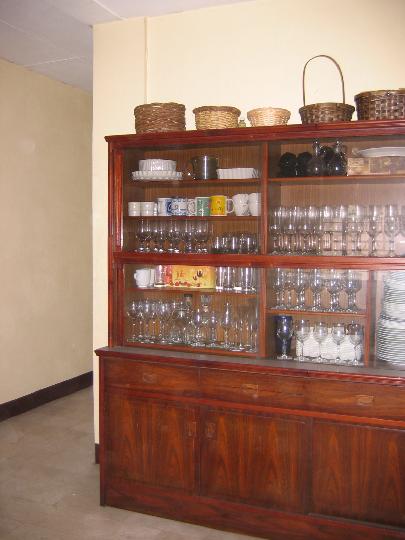| Kitchen cabinet and on the left leads to the dining area. |